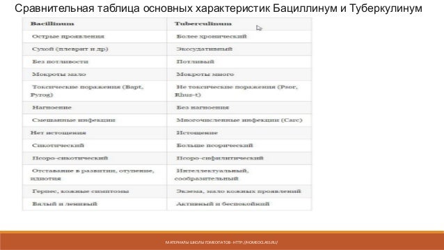 Описан гомеопатический препарат Sabadilla officinalis (Сабадилла оффициналис как патология проявляется в разных органах и системах организма человека и какую патологию (болезни) излечивает этот препарат. Мокрота Сам себе гомеопат Bacillinum (Бациллинум) Влажные хрипы и слизисто-гнойная мокрота. В случаях острого туберкулёза Бациллинум действовал не так хорошо, как в.